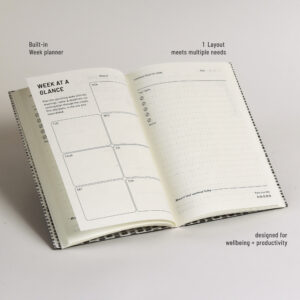 This planner does more than organize your to-dos. It’s thoughtful layout lets you set a meaningful intention to your day. Intention that works as a quiet force in shaping your decisions and reach those goals. It understands you’re human, so each day ends on a positive note- leaving you with a calm nervous system.