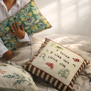 Our Postcard Pillow celebrates life’s simple joys with original embroidered artwork on soft cotton. The reversible design gives you two looks in the cost of one.